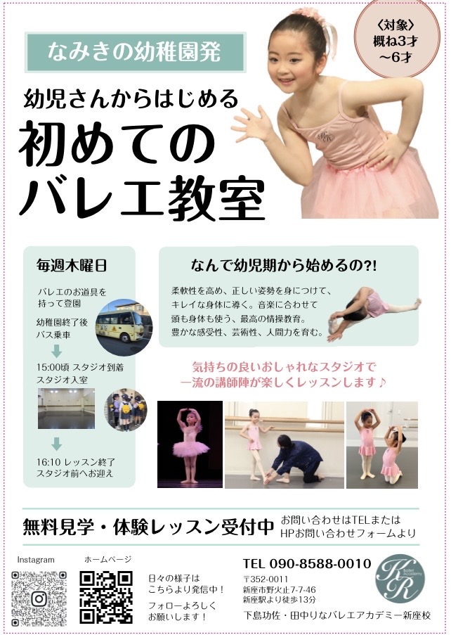 生まれも育ちもこの新座市で、クラシックバレエという芸術を皆様にお伝えする事ができ、とても幸せな日々です。
